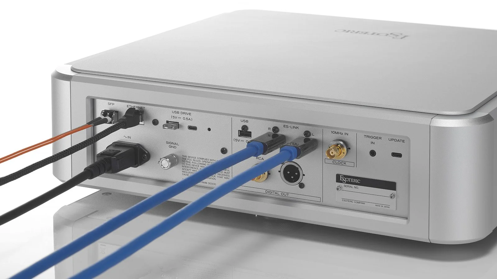 The Esoteric Network Engine G4 is equipped with a built-in network switch function and has two network interfaces: an Ethernet RJ45 connector and an SFP port.